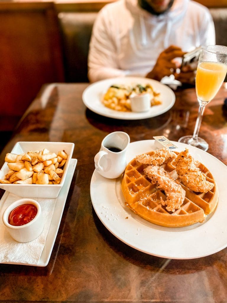 The Westin offers convienant dining at the onsite restaurant Bleu Restaurant and Lounge, which serves guests brunch, lunch, and dinner. You never have to leave The Westin Memphis Hotel! Most onsite restaurants I’ve experienced were blah when it came to the food or had lousy customer service. The Bleu Restaurant and Lounge staff were impeccable in catering to my needs. I enjoyed a delicious chicken and waffle brunch along with a cold mimosa. I could not sample the lunch and dinner offered, but I did receive a few recommendations from the staff.